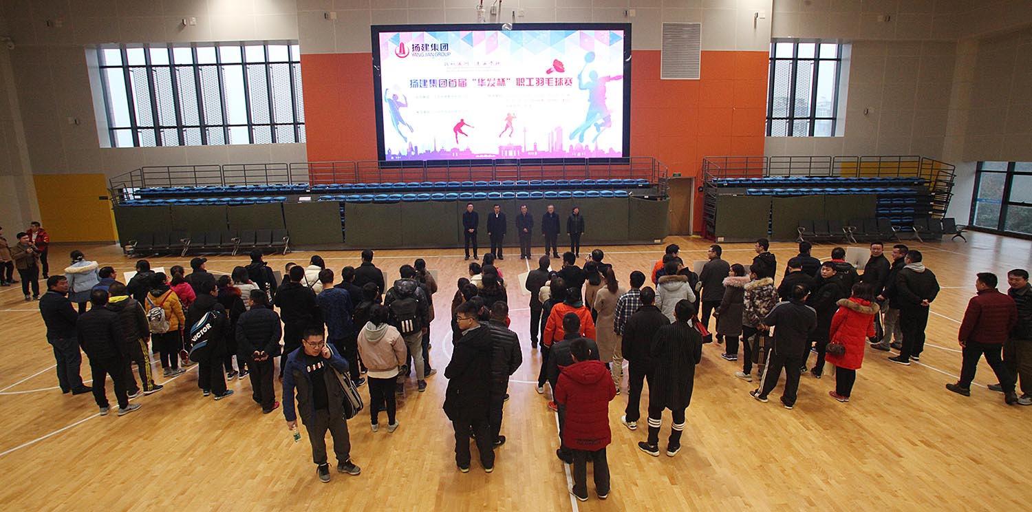 揚建網訊(辦公室 衛喜亮 文 沈家華 攝)2017年12月30日,時值2018年元旦前夕,集團在揚州市健身中心成功舉辦首屆“華發杯”職工羽毛球比賽。集團曹德榮董事長、梁云彪總裁、副董事長耿杰、工會主席張振新、辦公室主任孔凡裕等領導出席開幕式。耿杰副董事長代表集團及冠名單位致開幕詞。