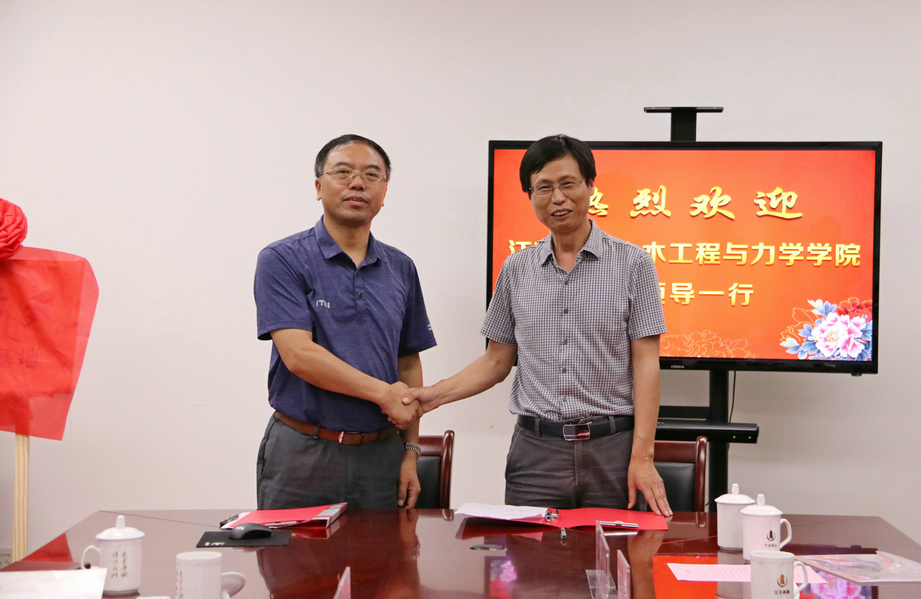 揚(yáng)建網(wǎng)訊 6月6日下午,江蘇大學(xué)土木工程與力學(xué)學(xué)院實(shí)踐教學(xué)基地簽約掛牌儀式在我集團(tuán)鹽阜西路辦公區(qū)二樓會議室舉行。江蘇大學(xué)土力學(xué)院書記張虹、院長畢勤勝等領(lǐng)導(dǎo),以及我集團(tuán)總經(jīng)理鄒厚存、黨委副書記張振新及人力資源部相關(guān)負(fù)責(zé)同志出席此次儀式。