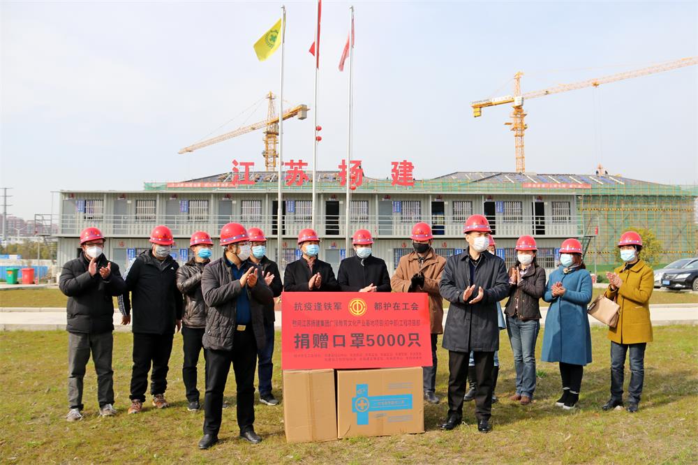 我集團副總經理陳寶中代表項目部接受了捐贈,并對市總工會及各建管單位捐贈口罩表示感謝。他表示,目前集團各大項目在做好防疫措施的基礎上已全面復工,揚建人一定會確保生產的平穩、安全、有序,同時不負市總工會和社會各界的援助和關注,在維護好職工安全健康權益的基礎上,把疫情期間延誤的工期搶回來。