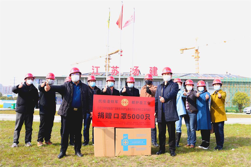 3月11日下午,揚州市總工會副主席韓士軍、建設工會主任范華及建管單位相關負責人,來到我集團承建的廣陵教育文化產業基地項目(初中部)工程項目部,在集團人力資源部、工會的陪同下,向項目部捐贈了口罩,并對企業的復工復產作了指導。