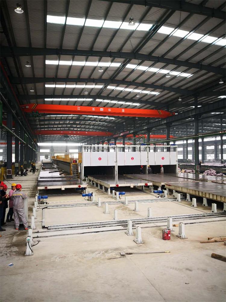 當前,利好的產業(yè)形勢、逐增的業(yè)務訂單、多樣的構件種類,對華晟公司的生產提出了新的要求。本著“改進工藝、釋放產能”的目的,華晟公司經理室超前謀劃,從產能、工藝流程、模臺周轉率、車間現(xiàn)有場地條件等方面綜合考慮,確定了第三跨固定模臺車間改造為自動化生產線和固定模臺生產線相結合的“隧道窯立體綜合生產線”。該生產線建成后,在各類構件生產、產能輸出、模臺利用率、養(yǎng)護窯效能、設備造價上具有明顯的優(yōu)勢。