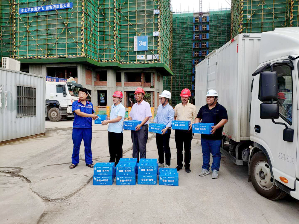 揚建網訊 8月21日下午,滁州安監站領導陳園、胡玉龍頂著37度的高溫,在炎炎烈日下為滁州時光風華園項目部送來了夏季清涼。他們強調,項目部要調整作息時間,保證茶水供應,確保防暑降溫藥品發放到位,切實落實好各項防暑降溫措施。