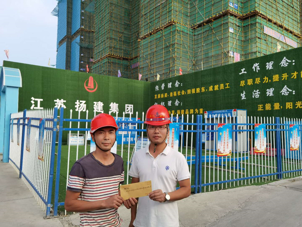 揚(yáng)建網(wǎng)訊 魏吉林是泰州匯鴻·景云花園二標(biāo)段項(xiàng)目12#樓鋁模工班組長(zhǎng),家境貧寒,父親身患癌癥住院治療,已經(jīng)花光了家中積蓄。