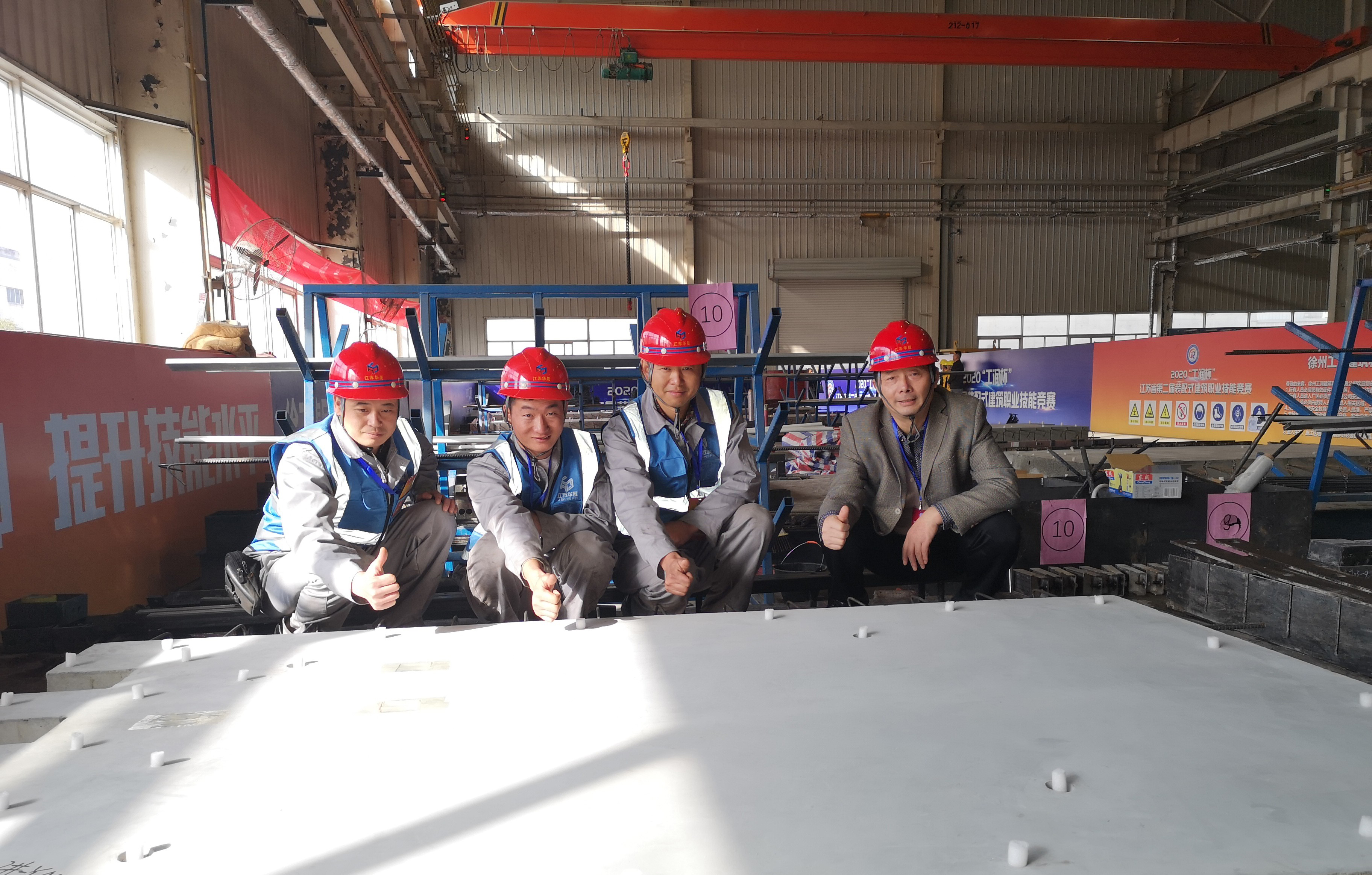 揚建網訊 日前,2020“工潤杯”第二屆江蘇省裝配式建筑職業技能競賽在徐州市工潤建筑科技有限公司舉行。華晟公司派出由總工周文忠帶隊,騰瑞勞務3名選手組成的小組參賽,并順利榮獲全省混凝土構件制作競賽二等獎。