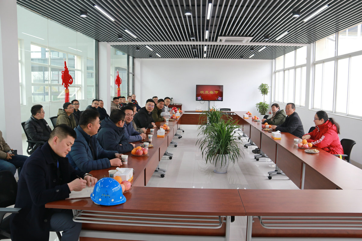 在鋼構公司會議室,曹董事長一行分別給大家送去了新春祝福,并要求大家做好疫情防控與安全生產工作,做好“三保一預”工作,生產任務緊的同時要保安全、保質量、保進度,高質量發展。要求鋼構公司經營層切實關心外地留揚員工,做好他們的后勤保障工作。讓留揚務工人員在揚州度過一個健康、溫暖的安心年。