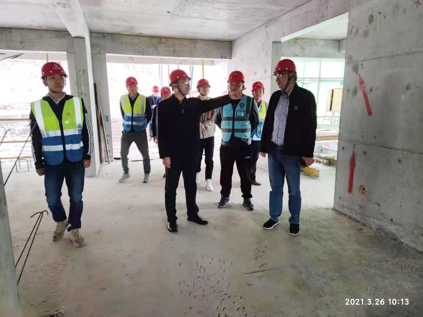 鄒總一行首先檢查了在建的天慧美域天城項(xiàng)目,并就美域天城10#樓混凝土成型質(zhì)量、觀感、墻柱梁板交界處位置混凝土澆筑控制技術(shù)提出了具體可行的建議。