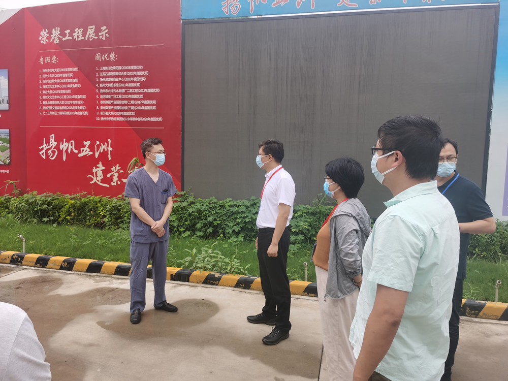 揚建網訊 8月15日上午10:00,揚州市廣陵區郎俊區長和李建芳副區長來到揚州頤和醫療健康中心項目檢查了項目防疫工作。