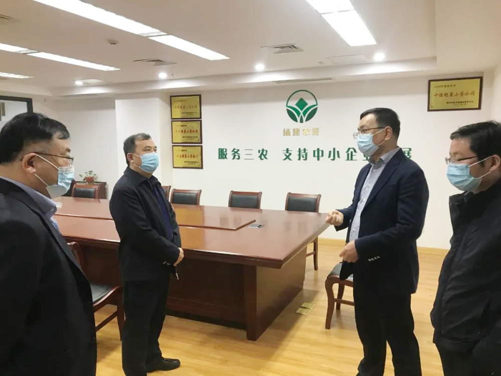 揚建網訊 3月14日上午,揚州市地方金融監督管理局銀行保險處處長周愛軍、揚州市金融服務中心主任張永平和揚州市小額貸款公司行業協會一行4人,前往揚州經濟技術開發區揚建農村小額貸款有限公司(以下簡稱“揚建小貸”)檢查疫情防控等情況。