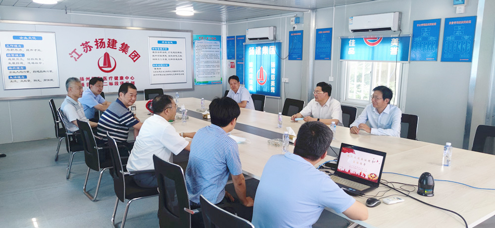 揚建網訊 6月17日下午,市人大常委會副主任蔣愛祥率領市人大環資城建、農村工委有關人員對揚建集團紓解難點、化解風險展開了專題調研,并實地察看了頤和醫療健康中心二標段項目施工情況。