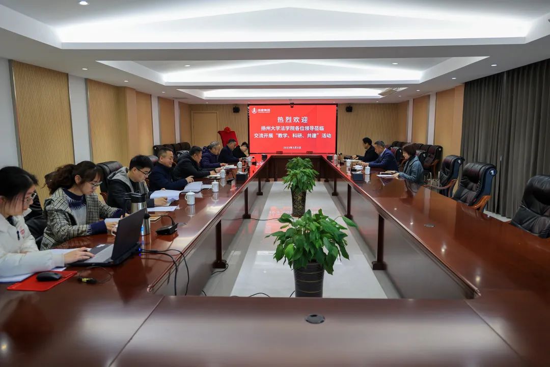 活動過程中,雙方在B座二樓會議室進行了廣泛、深入的交流座談,并舉行了揚州大學法學院“教學科研實踐基地”共建協議簽約儀式,和揚州大學法學院“教學實習基地”合作共建揭牌儀式。