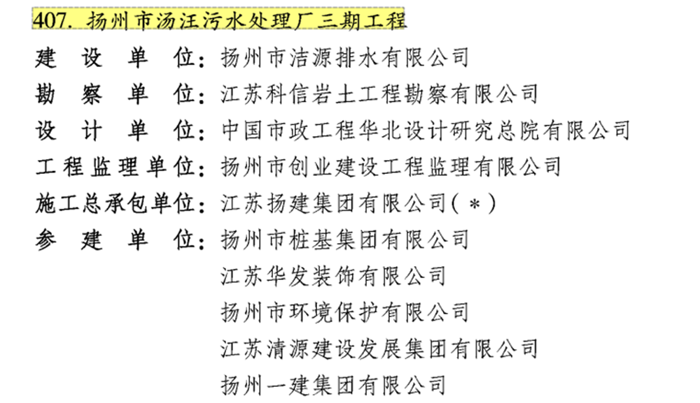 揚建集團湯汪污水處理廠三期工程榮獲國家優質工程獎