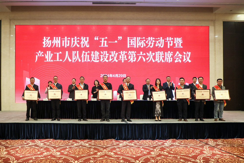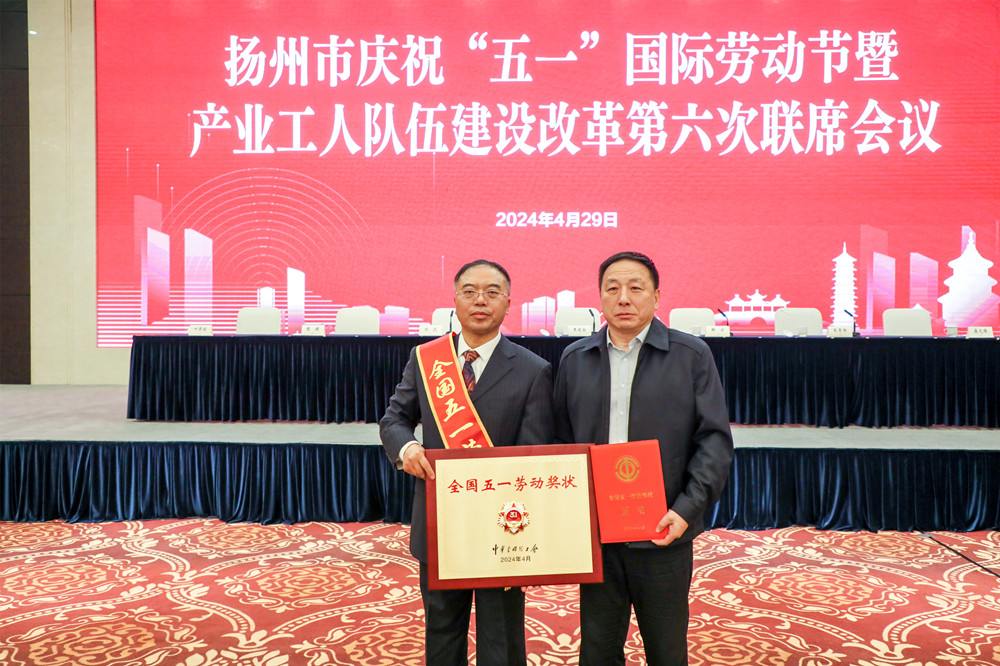4月29日,揚州市召開慶?!拔逡弧眹H勞動節(jié)暨產(chǎn)業(yè)工人隊伍建設(shè)改革第六次聯(lián)席會議,表彰揚州市獲得全國、省、市五一勞動獎和工人先鋒號的單位及代表。集團(tuán)公司總經(jīng)理鄒厚存作為全市唯一獲得全國五一勞動獎狀的單位代表,在會上作了題為《根植主業(yè)建精品,守正創(chuàng)新謀發(fā)展》的宣講,集團(tuán)公司副總經(jīng)理、工會主席劉海斌參加會議。